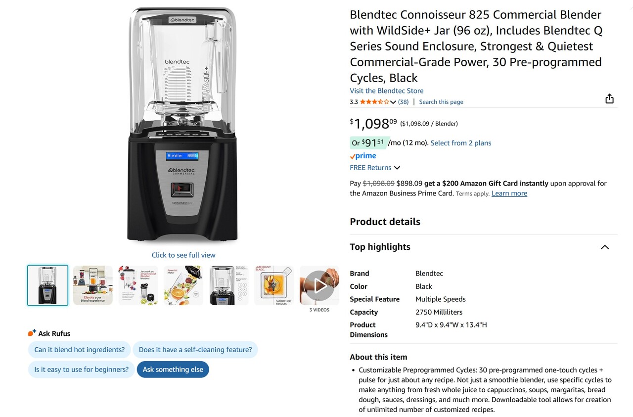 Blendtec 825 Commercial Blender  (매매가 $300)