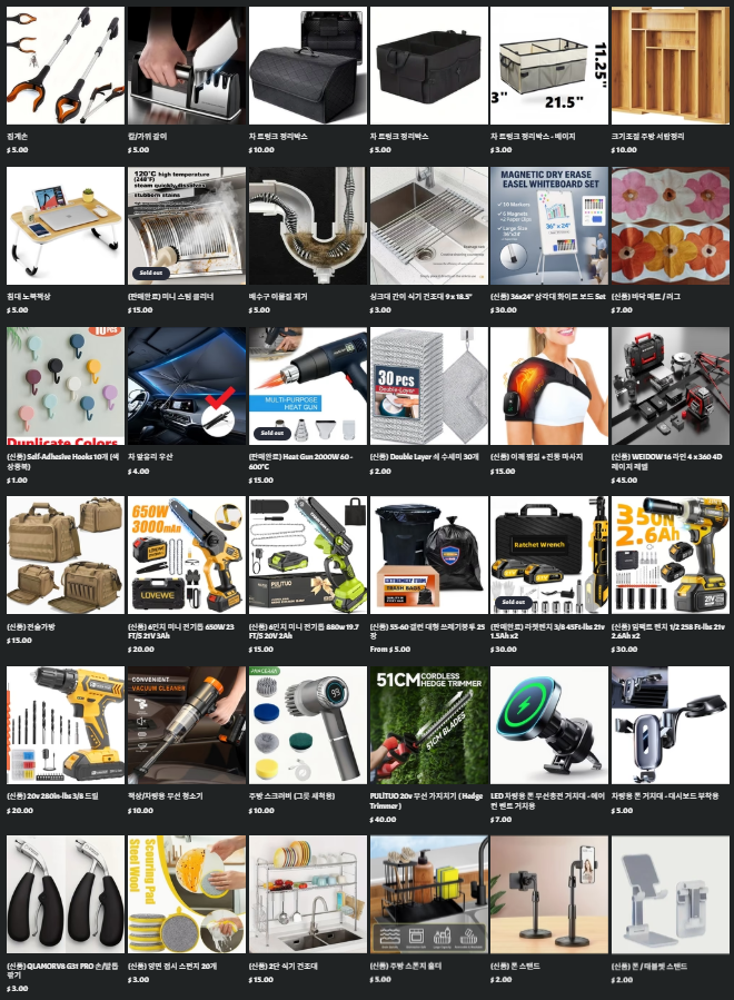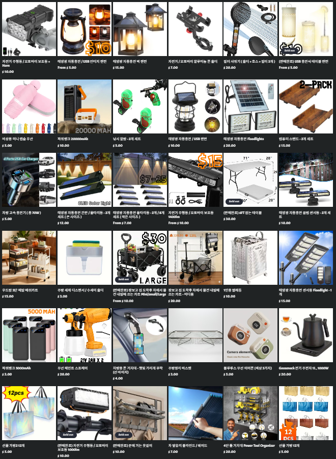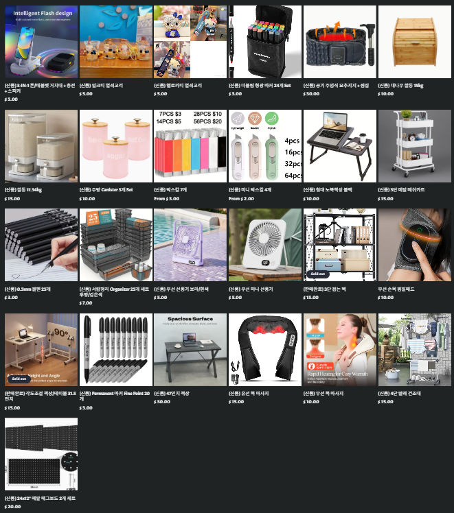 - 하루 혹은 이틀에 물건 최소 하나이상 올립니다. ( 주로 저녁 9시이후 )