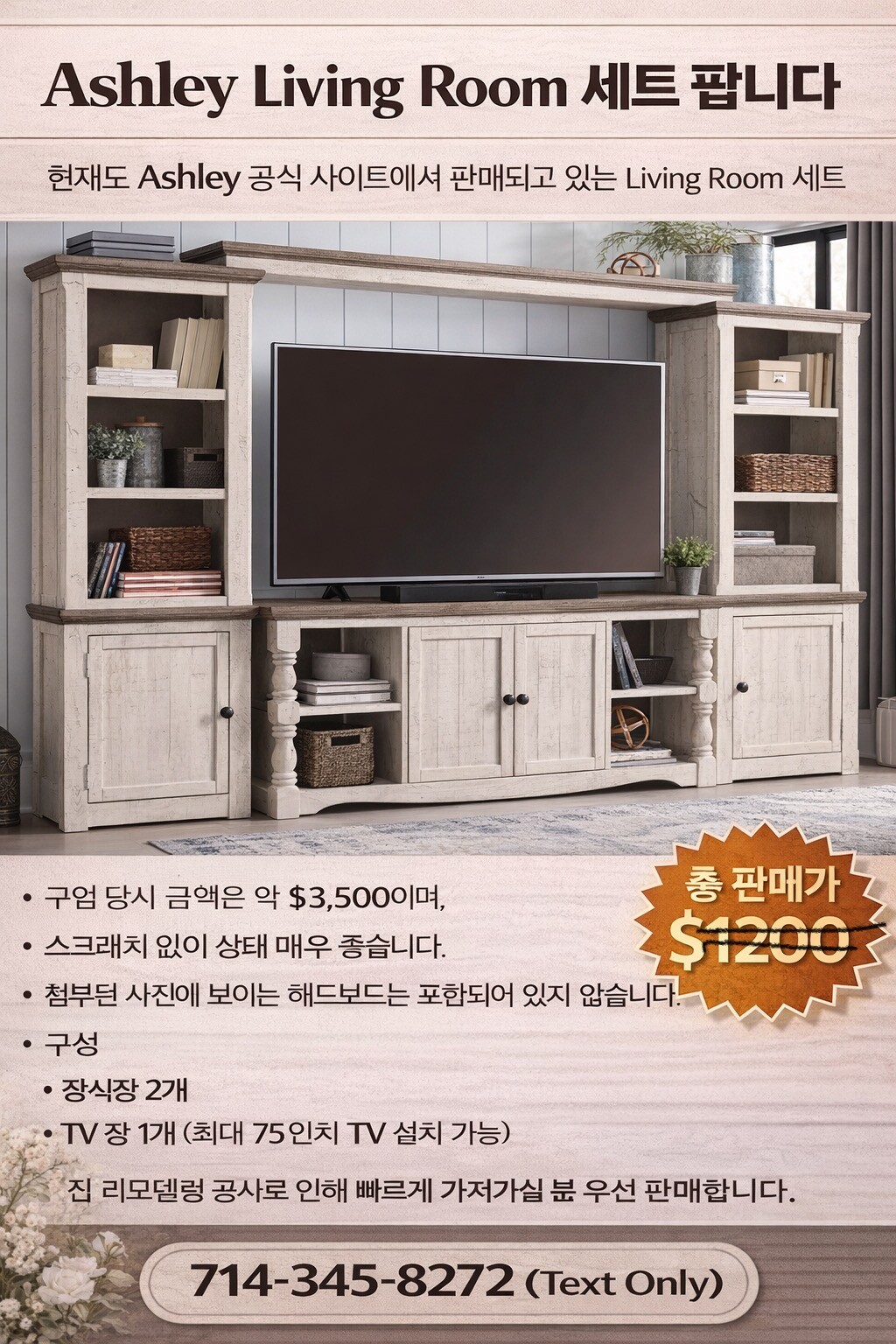 안녕하세요 집 리모델링 공사로 인해 ashley 제품 팝니다