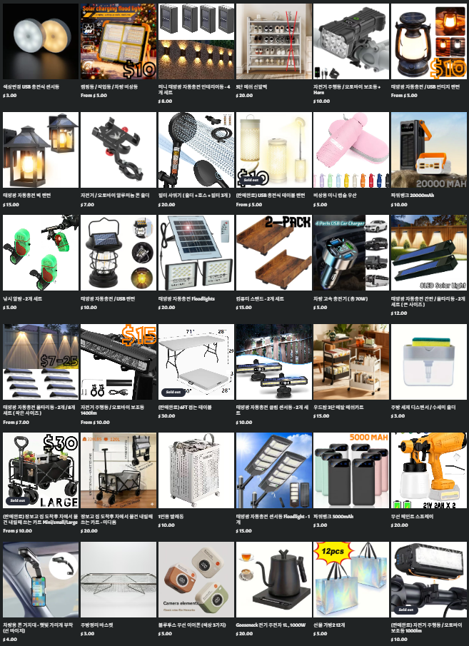 - 하루 혹은 이틀에 물건 최소 하나이상 올립니다. ( 주로 저녁 9시이후 )