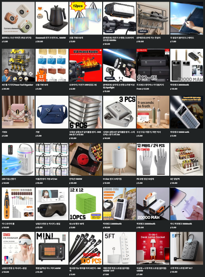 - 하루 혹은 이틀에 물건 최소 하나이상 올립니다. ( 주로 저녁 9시이후 )