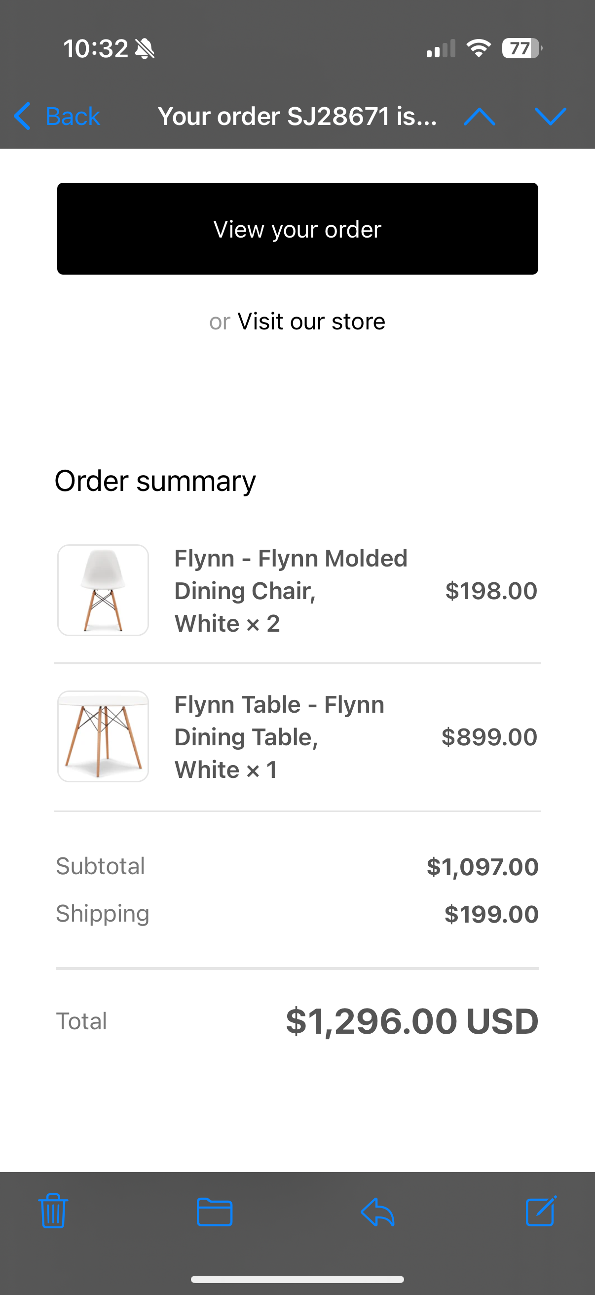 White 원형식탁 + 의자2개 Set 판매 합니다. 원가가 $1296이었습니다.
