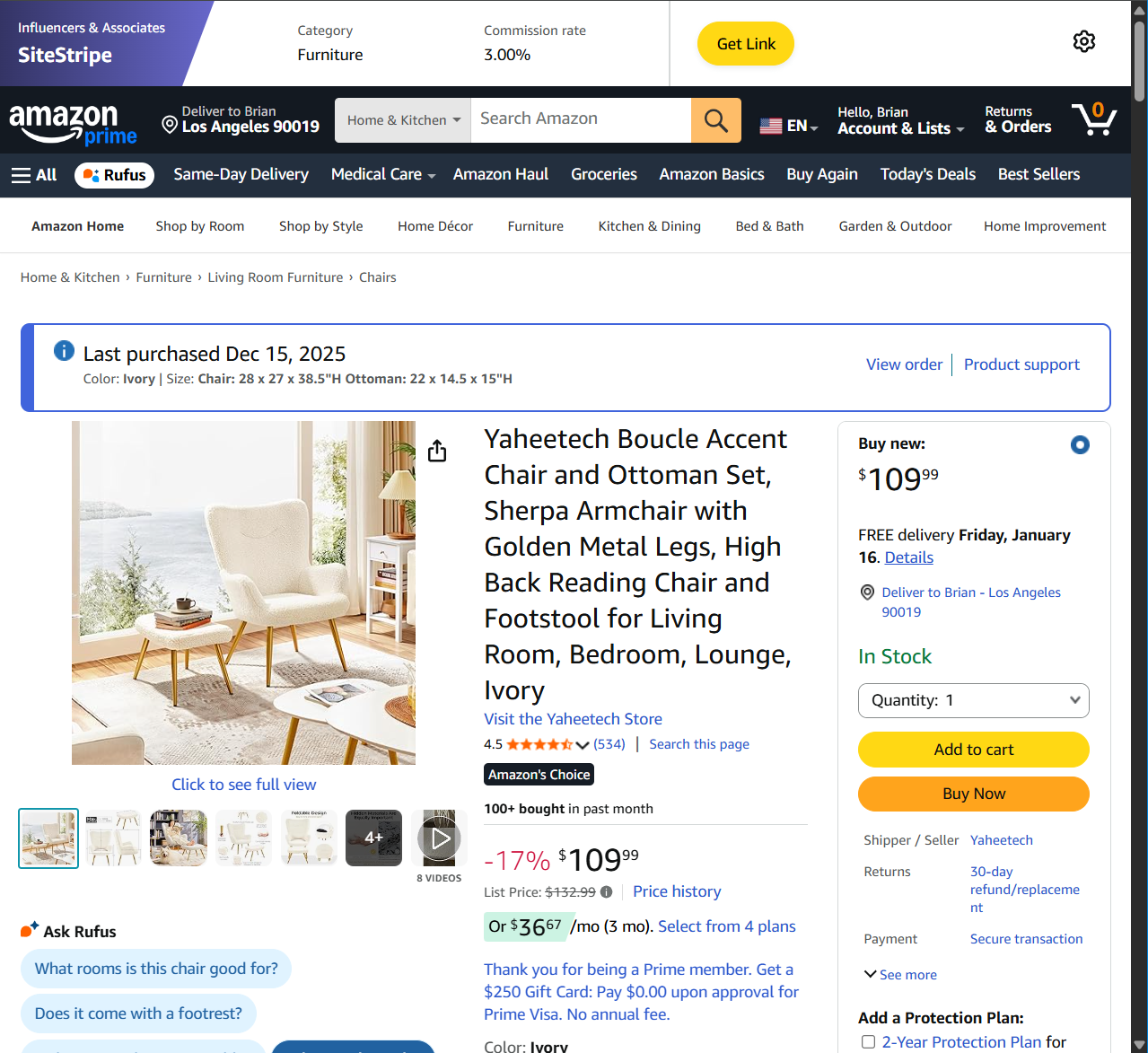 아주 이쁜 $109짜리 새 거실 체어 $80에 팝니다.