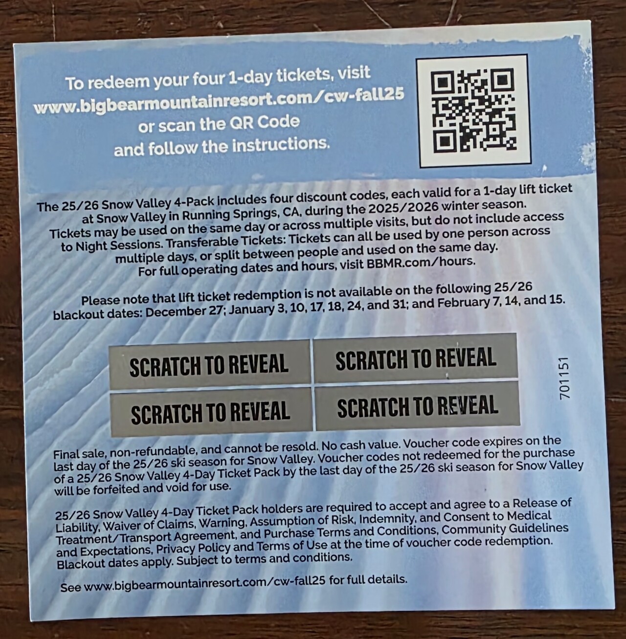 25/26 시즌 Snow Valley Ticket 팔아요.