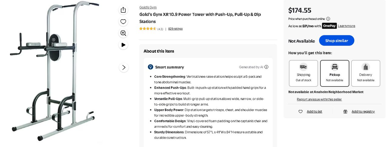 Gold’s Gym 골드짐 제품이고 월마트에서 174.55 에 파는데 $ 55 에 모십니다.