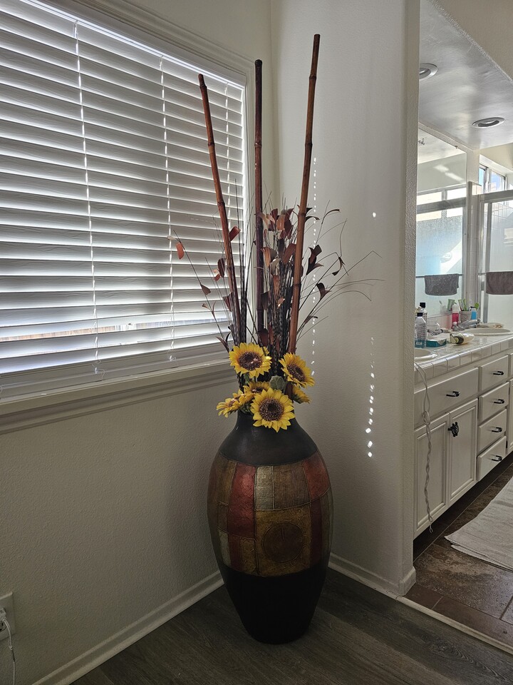 하우스나 쇼룸. 스토아에 디스프레이용의 예쁜 해바라기꼿과 대나무의 콜라보로 이루어진 화병 급매 해요.
