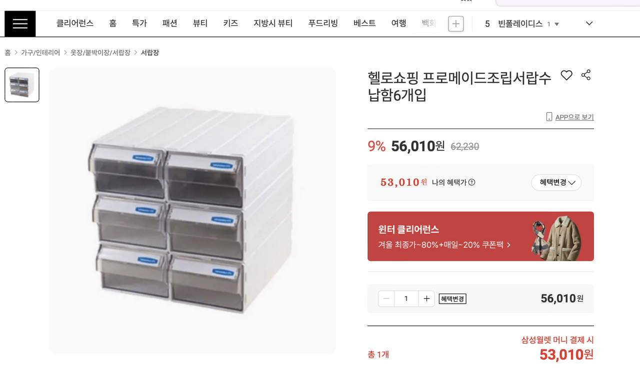 한국에서 얼마에 파는지 찾아봤더니 12개 수납장에 9만원쯤 하네요.