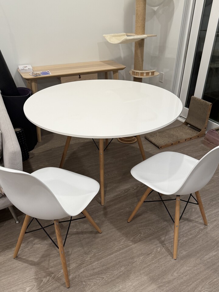 White 원형식탁 + 의자2개 Set 판매 합니다. 원가가 $1296이었습니다.