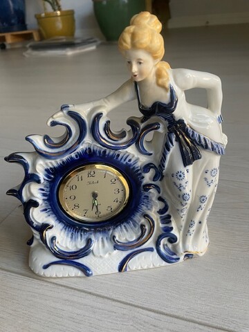 Vintage Porcelain Table Clock was made in Japan in the 1970s.