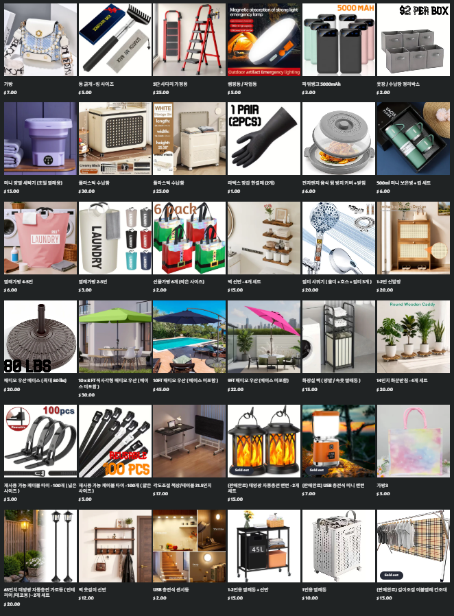 ❌ 하루 혹은 이틀에 물건 최소 하나이상 올립니다. ( 주로 저녁 9시이후 )