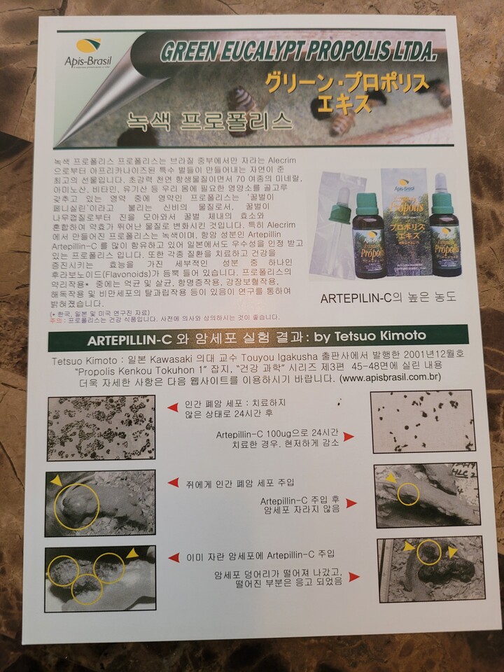 브라질에서 직수입하는 천연 항생제 액기스 ($ 30), 스프레이 ($ 20)  입니다.  귀국선물로도 좋습니다. 한인타운 디리버리 합니다.