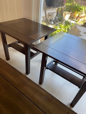 Brown Solid Wood Coffee Table 46W x 23D x 18H Matching end tables 23 x 21D x 21H.