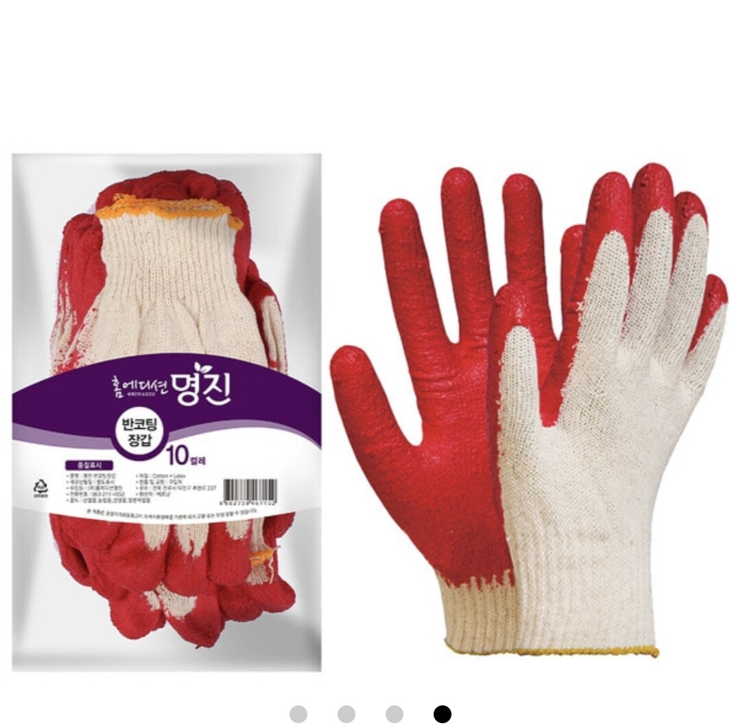 튼튼한 면장갑에 미끄럼 방지 반코팅 처리로 작업 시 그립감이 뛰어납니다.