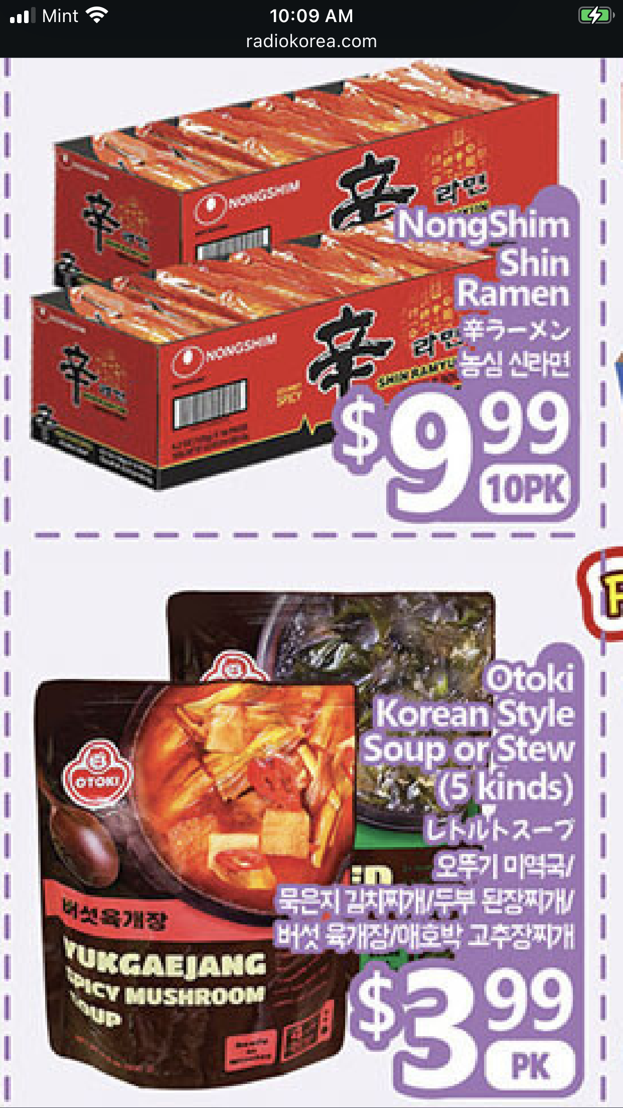 현재 마켓에서 신라면 10개에 9.99에 판매하고 있어요