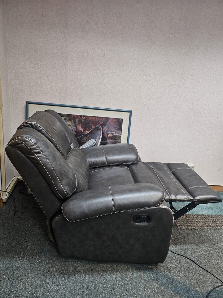 병원 정리, 원장실에서 가끔씩 사용하던 굉장히 편한 리클라이너 소파, 쿠션 상태 아주좋음, 커버 상태 아주좋음, 짙은 그레이 색,