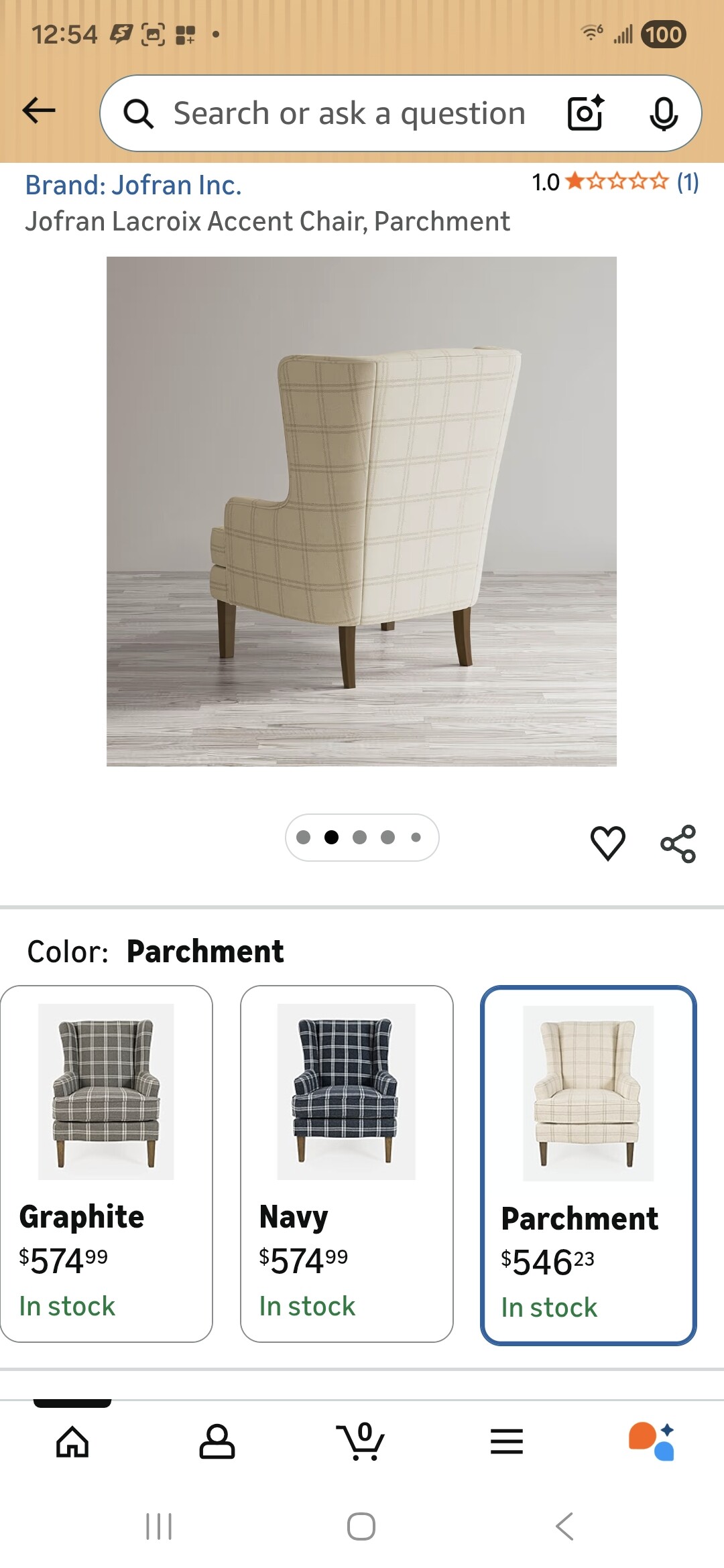 이사로 인해 고급 소파식 의자 (Jofran Lacroix Parchment Fabric Accent Chair) 급하게 팝니다.