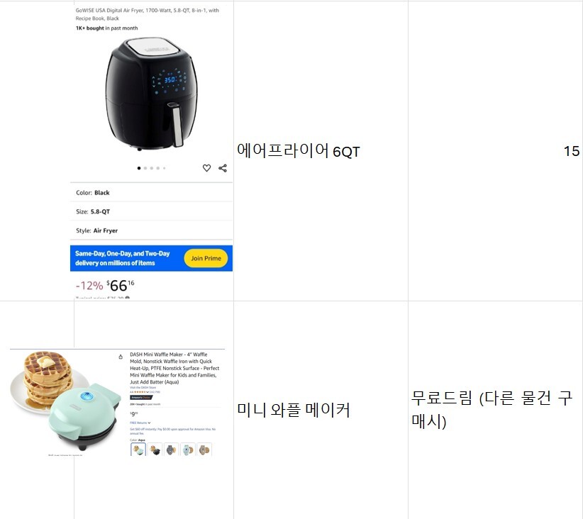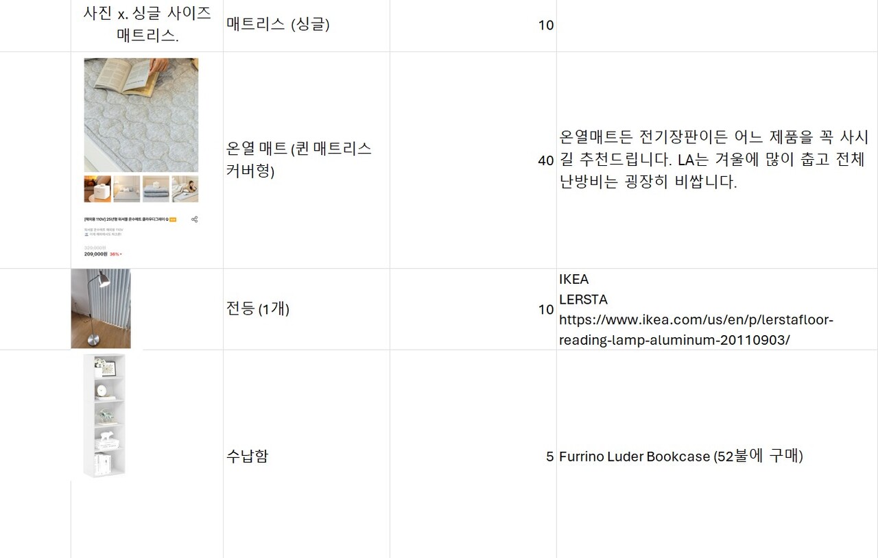 몇가지 부피 작은 물품은 직접 가져가셔도 됩니다.
