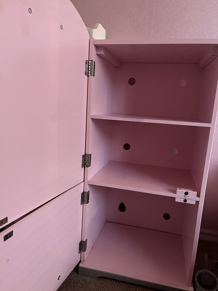 플라스틱이 아닌 나무로 된 아이들 소꿉놀이 냉장고와 책장입니다