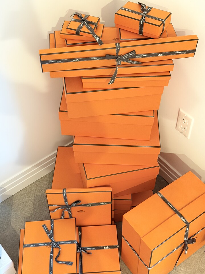 에르메스 핸드백 박스. 쟈켓 가디건 등 옷 박스. 슈즈 박스. 스카프 박스. 팔찌 박스 등 일체