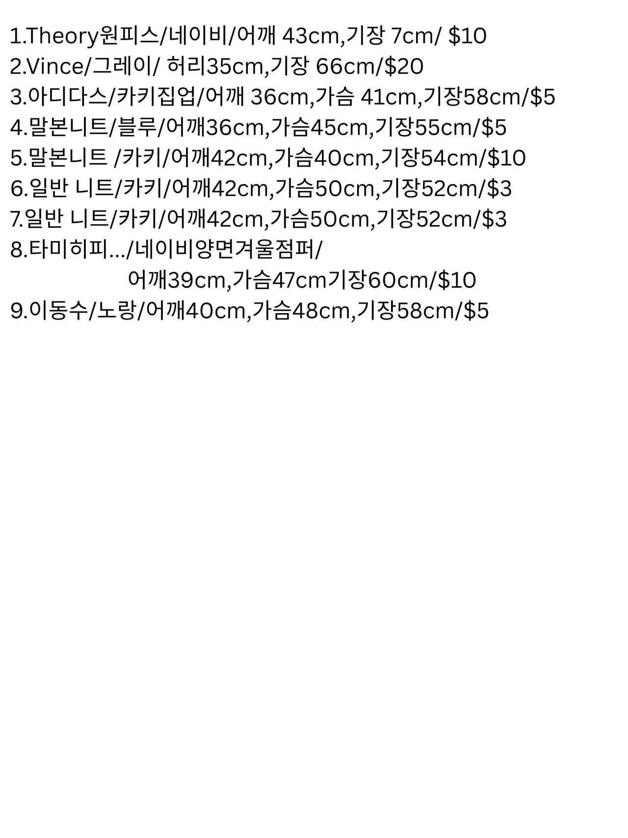 7.일반 니트/카키/어깨42cm,가슴50cm,기장52cm/$3