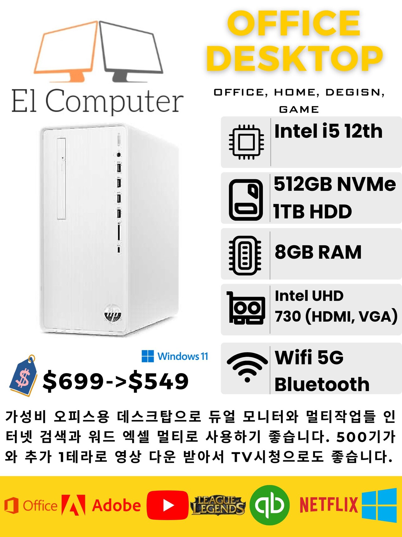 New 검퓨터는 물론, 중고 컴퓨터들(윈도우, 맥)도 좋은 컨디션에 프로그램 설치와 최적화되어서 최저가에 판매합니다. “비즈니스란에 컴엘258”로 검색하셔서 가격링크 비교해보세요.