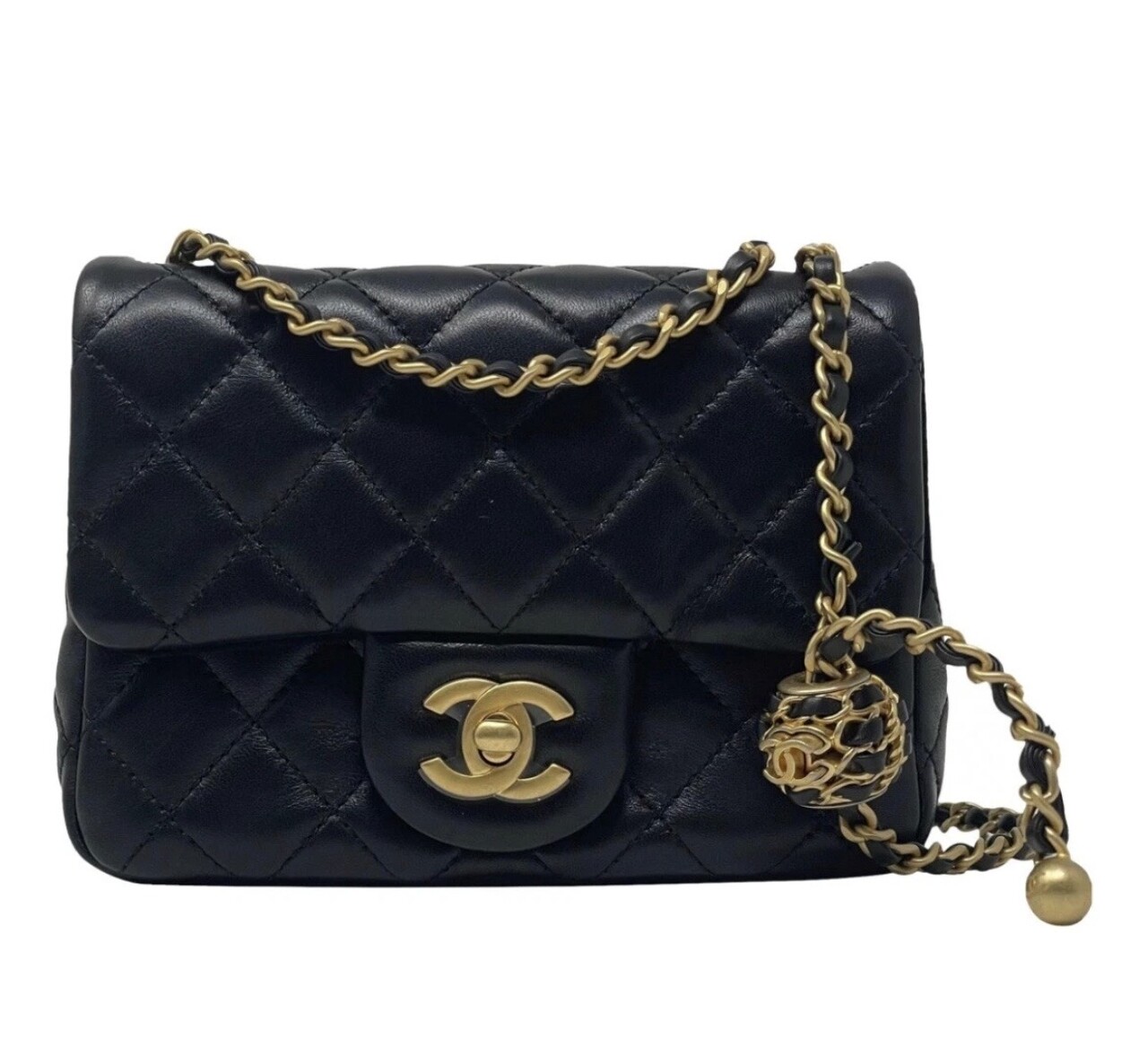 새상품/풀세트 샤넬 펄크러쉬(골드볼) 미니 스퀘어(쁘띠삭) 블랙 금장