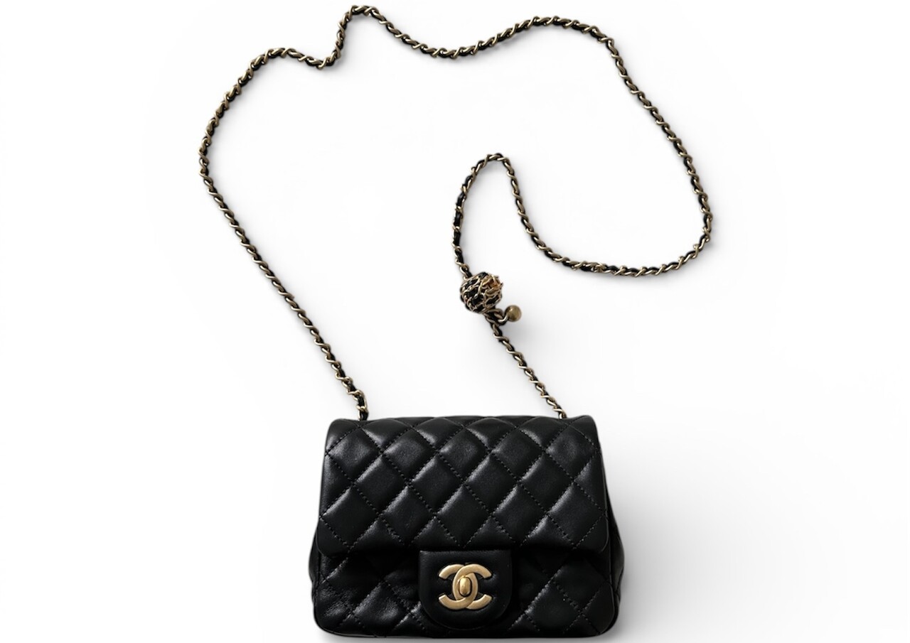 [새상품/풀세트] 샤넬 펄크러쉬(골드볼) 미니 스퀘어(쁘띠삭) 블랙 금장