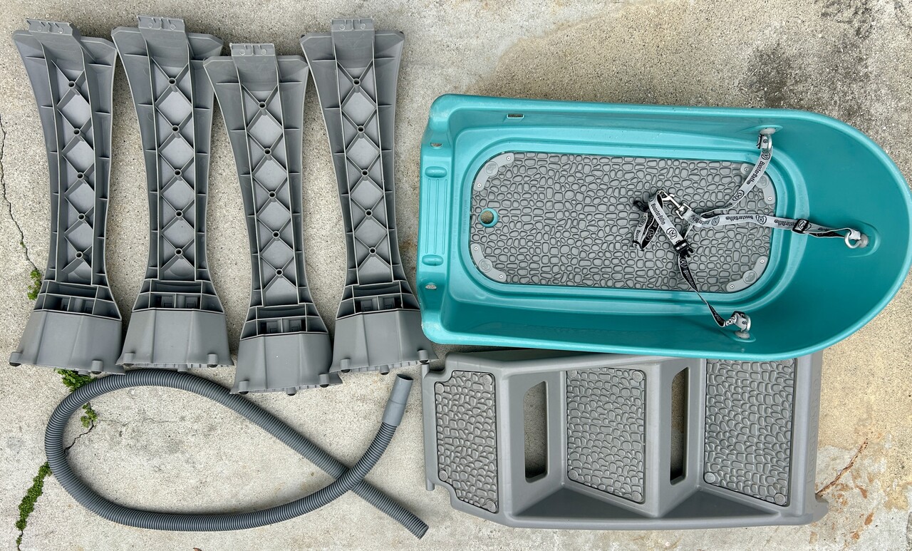 저희가 샤워실에 수도꼭지가 따로 없어서 60파운드 골든두들 목욕시킬때 몇번 사용하다가 줄 달린 샤워기로 바꾼후로 사용을 할 필요가 없어져서 창고에 넣어 뒀어요.