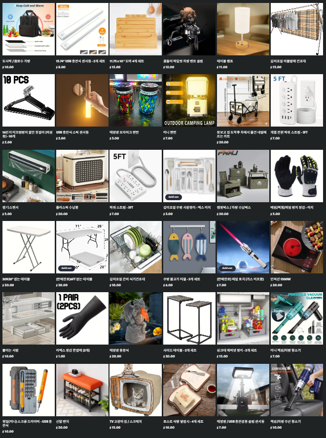 ❌ 하루 혹은 이틀에 물건 최소 하나이상 올립니다. ( 주로 저녁 9시이후 )