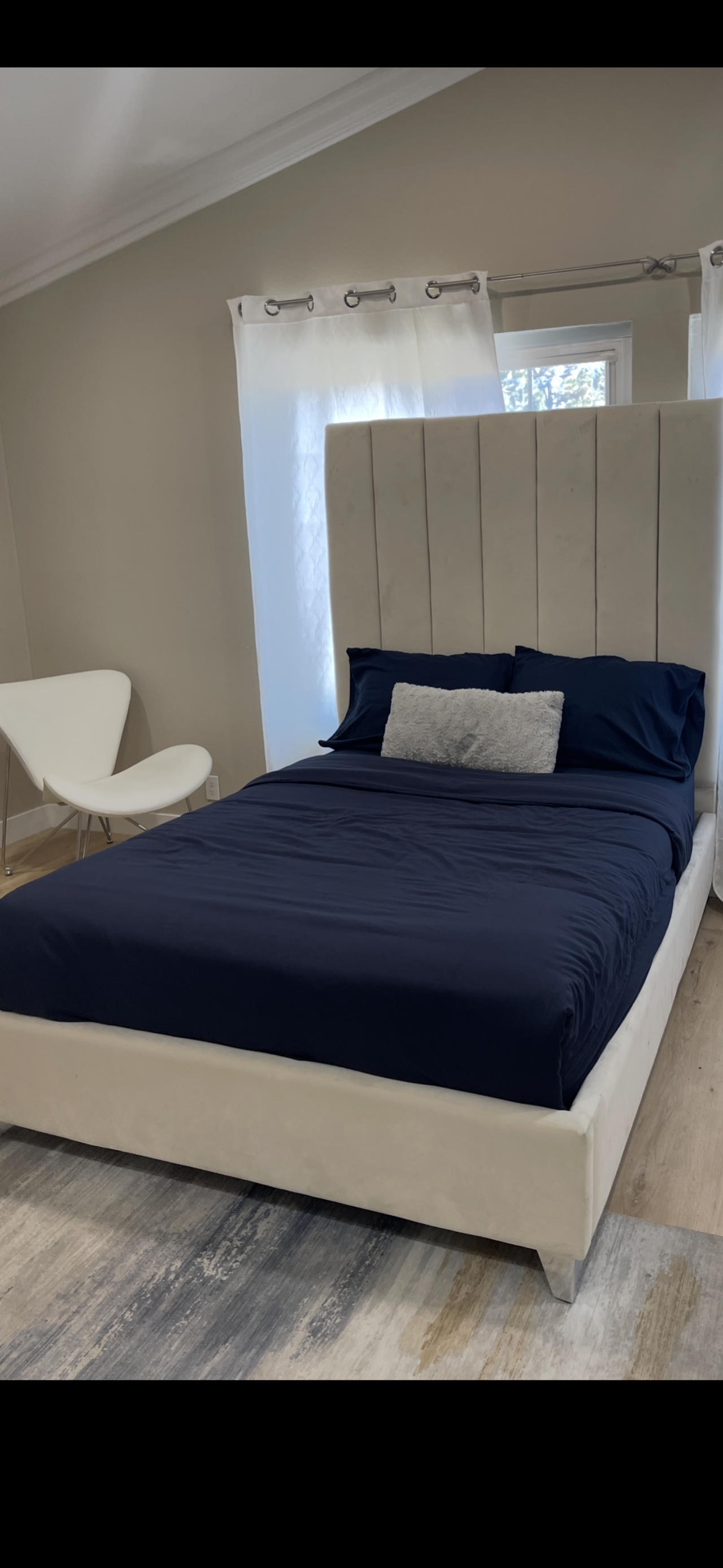 견고, 모던하고 세련된 아이보리 벨벳 소재 프레임