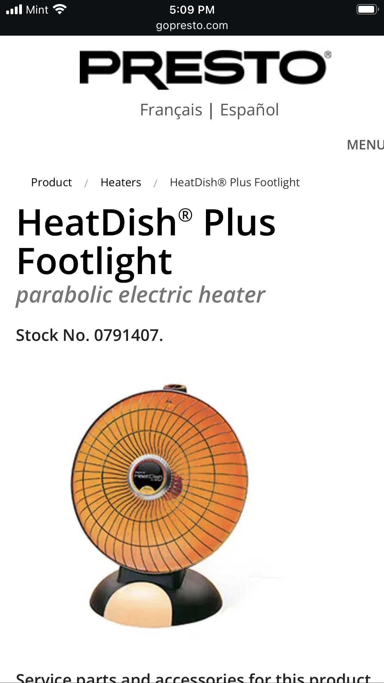 Presto Heat Dish Plus Footlight Parabolic