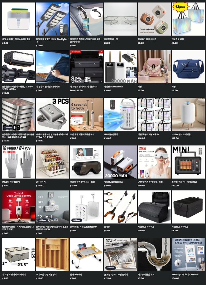 ❌ 하루 혹은 이틀에 물건 최소 하나이상 올립니다. ( 주로 저녁 9시이후 )