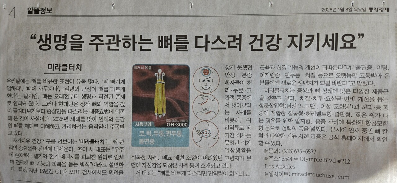 inquiry:213-255-1410, 213-675-6877 미라클터치 뼈과학 연구소