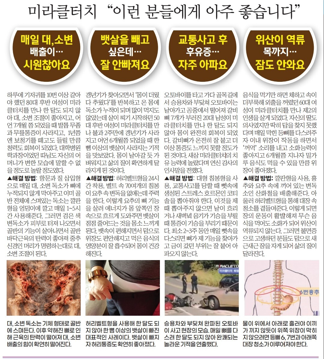 뱃살은 보통 우리가 똥배라고 부르죠. 말 그대로 뱃속에 똥기운이 기체 형태로 가득 들어차 있는 형국입니다. 치유법도 말 그대로 똥을 없애주면 됩니다. 그래서 보통 석션이나 먹는 것을 통해 좋은 기운, 나쁜 기운을 한꺼번에 없애는 방법을 택하게 됩니다. 이렇게 하면 요요현상이 생겨 다시 뱃속을 채우려는 현상으로 다시 배가 불러옵니다. 미라클터치 허리벨트형으로 에너지를 넣어주면 똥기운만 없어집니다. 한 뼘 정도 뱃살이 빠졌는데 체중은 차이가 없습니다. 기체만 없앴기 때문이죠.