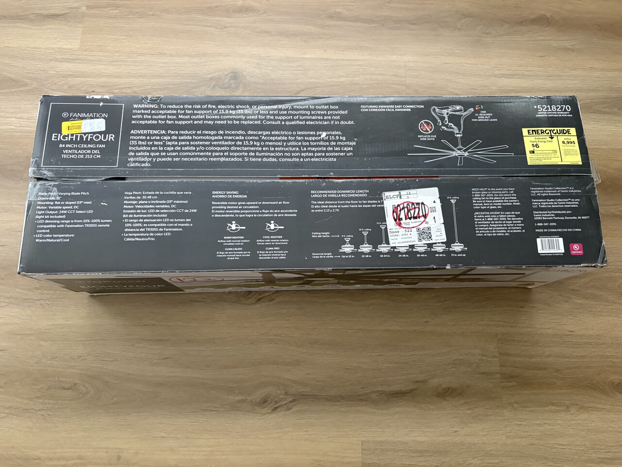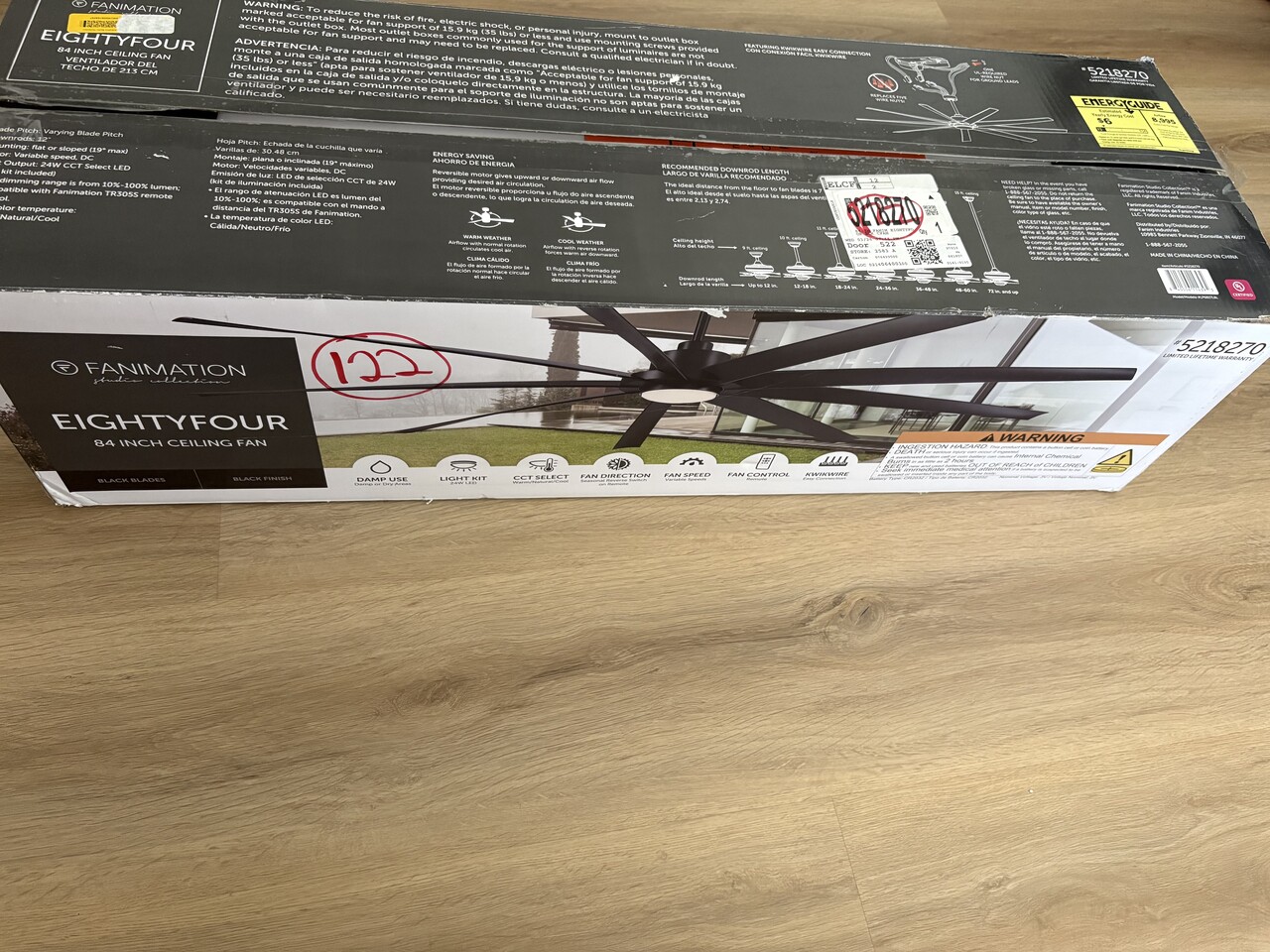 EightyFour 84-in Black with Matte Black Blades Adjustable White LED Covered Outdoor Ceiling Fan