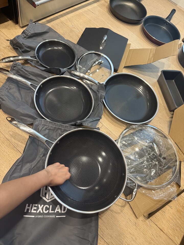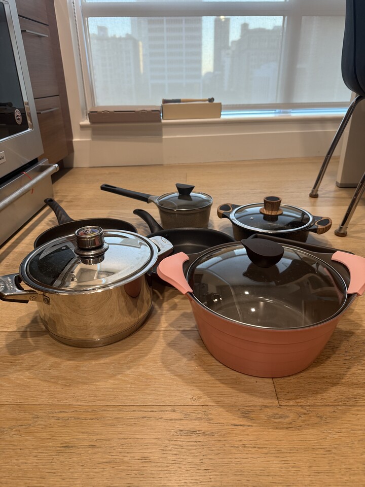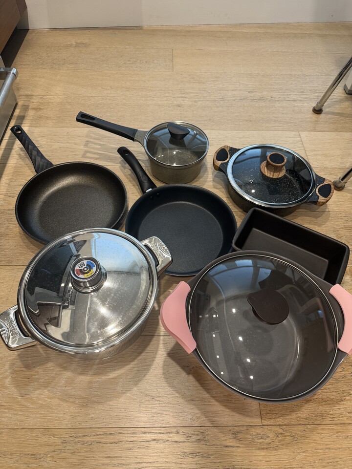 고든램지 팬들만 5백 몇십불 한거 같아요. 사진애 있는 거 싹 드립니다~~12인치 팬 하나만 사용했고 나머지는 미사용!