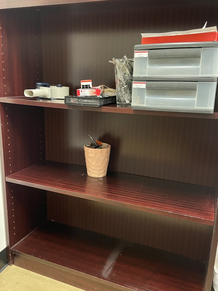 나무 책장 3단, 4단 하나씩 있습니다.