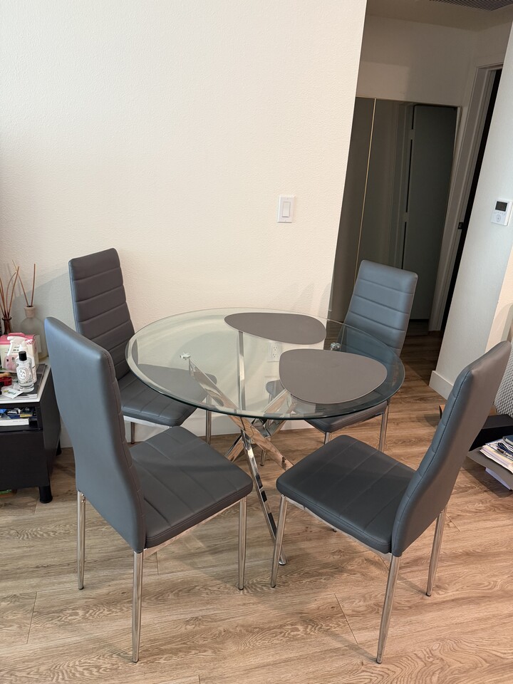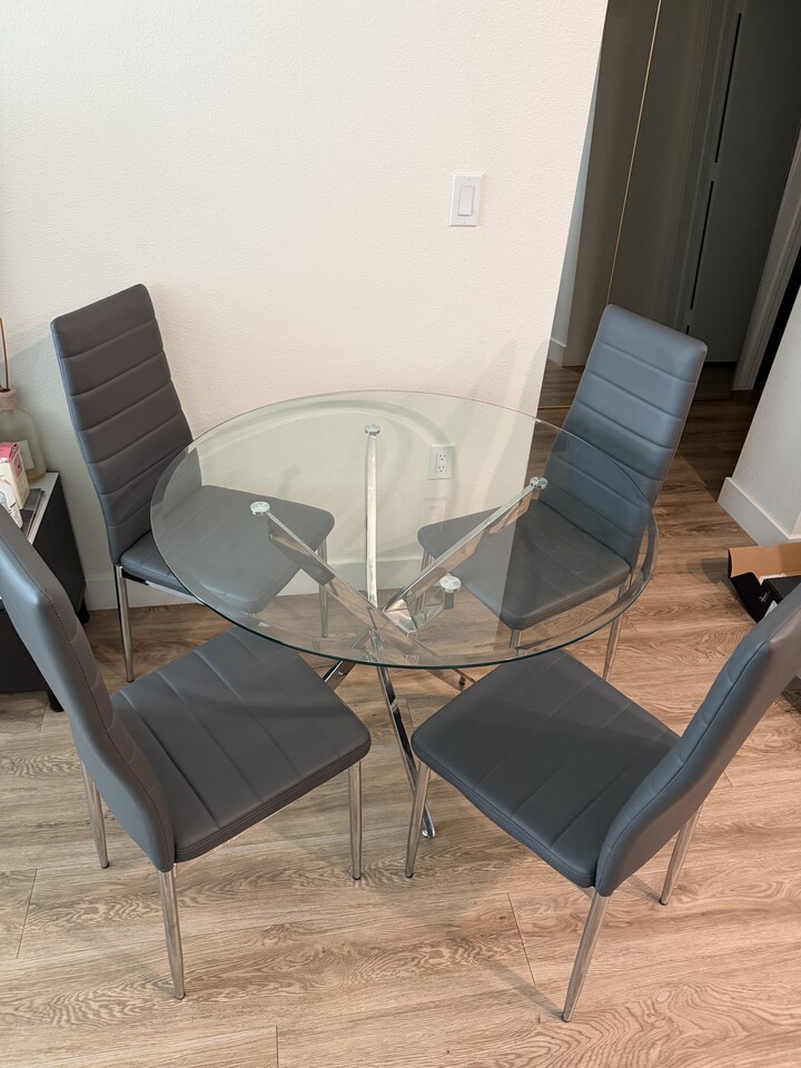 구성: 식탁 + 의자 4개 + 같은 디자인의 미니 소파 테이블(사이드 테이블)