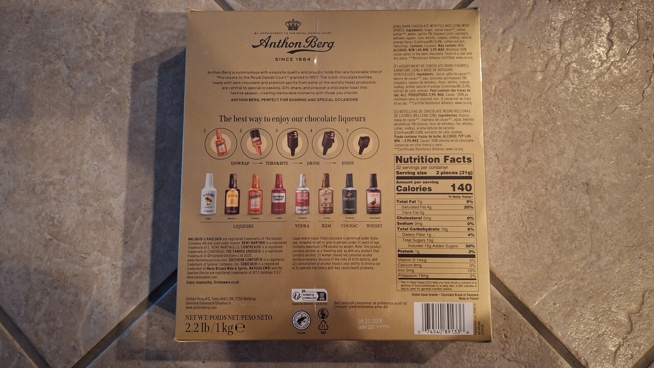 다크 초콜렛 안에 알코올이 있는 초코렛입니다