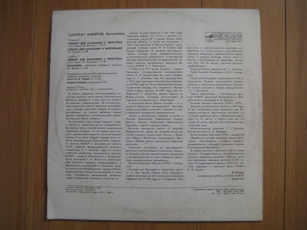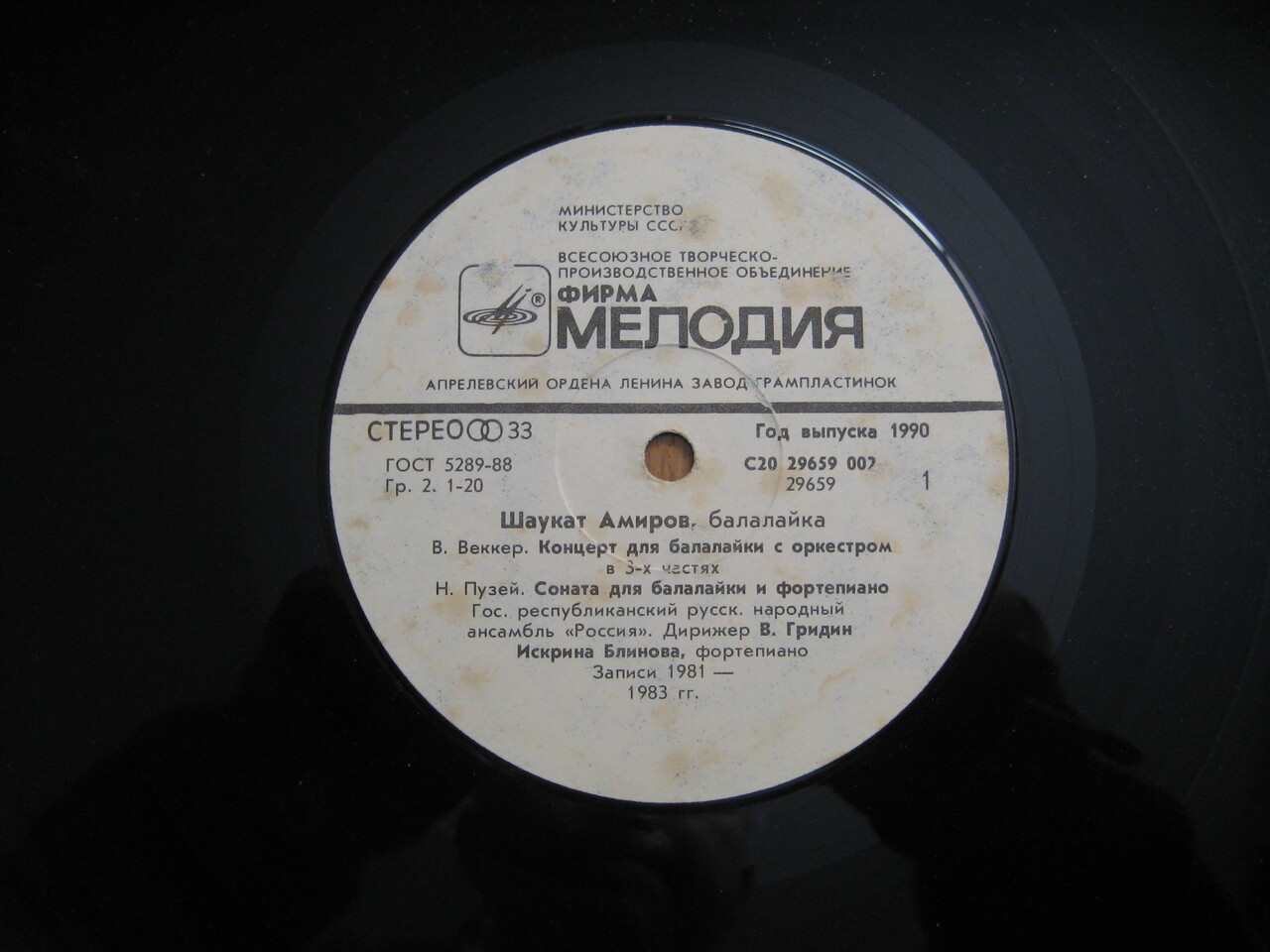 1990년 구 소련 레닌 훈장 수훈 음반 공장에서 3000장 한정 생산된 희귀 음반.