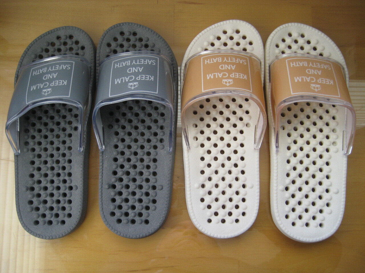 미끄러짐을 방지하고 지압 기능이 있는 욕실화 새겁니다.