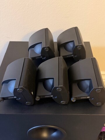 Complete with 5 satellite speakers, all wires for satellite speakers, 1 subwoofer (SUB125a), 4 wall mounts and a manual.