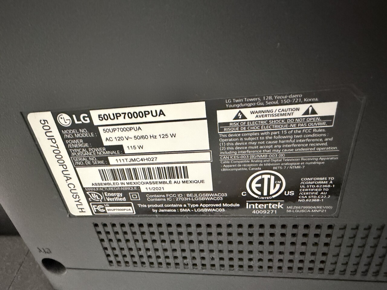 LG 50인치 4K 스마트 TV 판매 합니다.