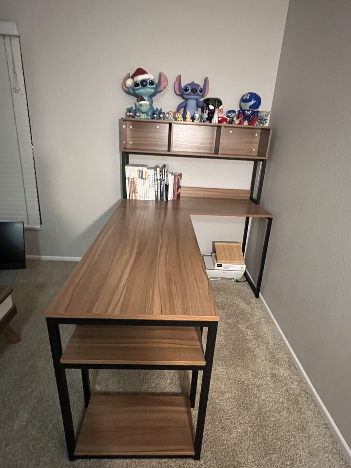 사진에서 보시다시피 꽤 큰 L짜 모양에 수납공간도 많고 무엇보다 나무들이 무거운 재질이라 흔들리지않고