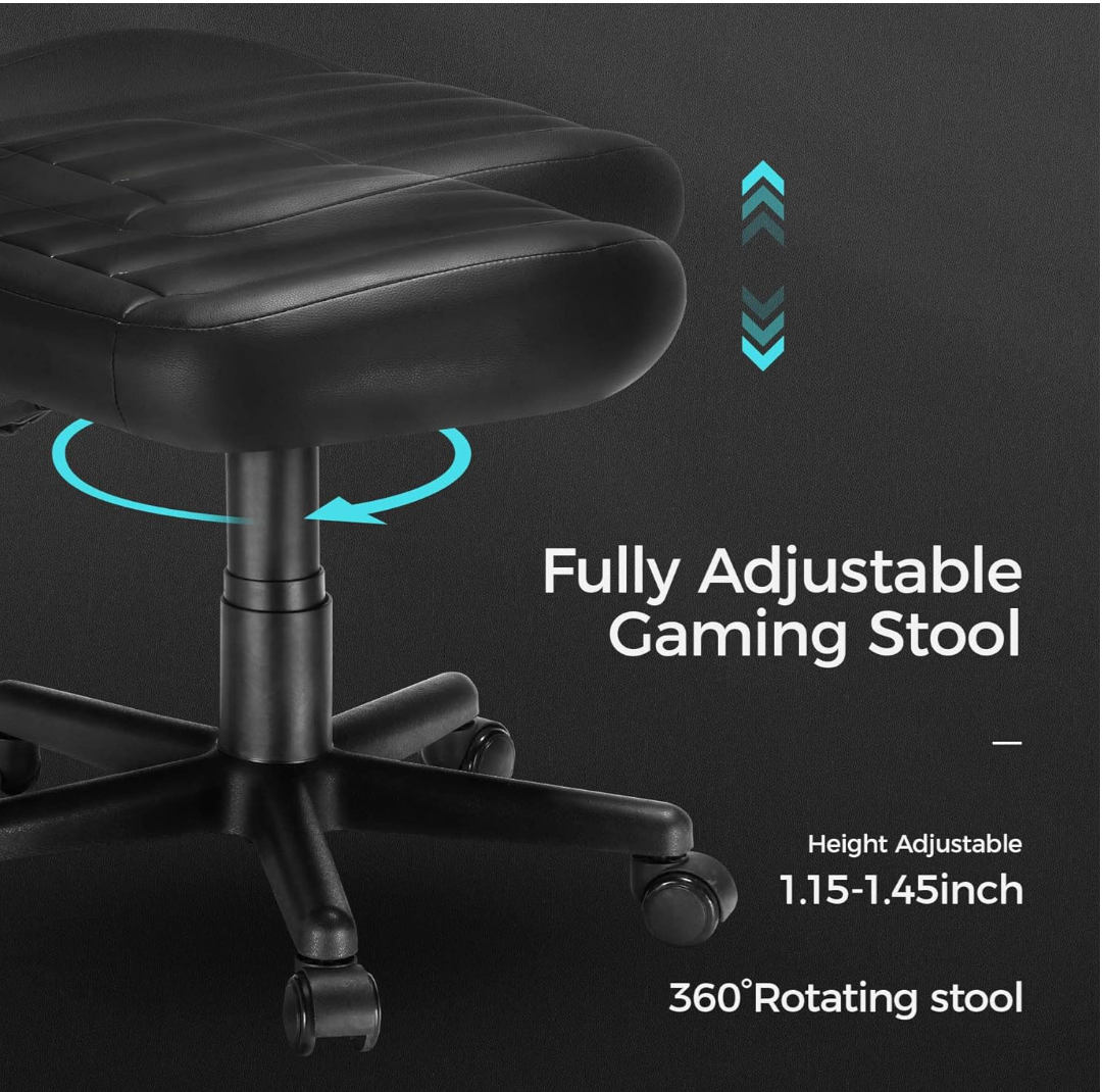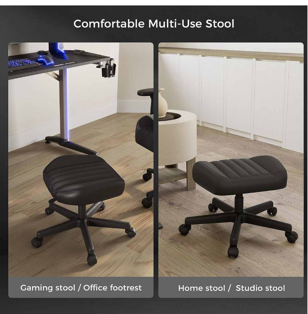 의자 Multi-Use Stool, Height Adjustable Swivel Rolling Stool Chair W Wheels, Ottoman Footrest for Gaming, Home Office, Black