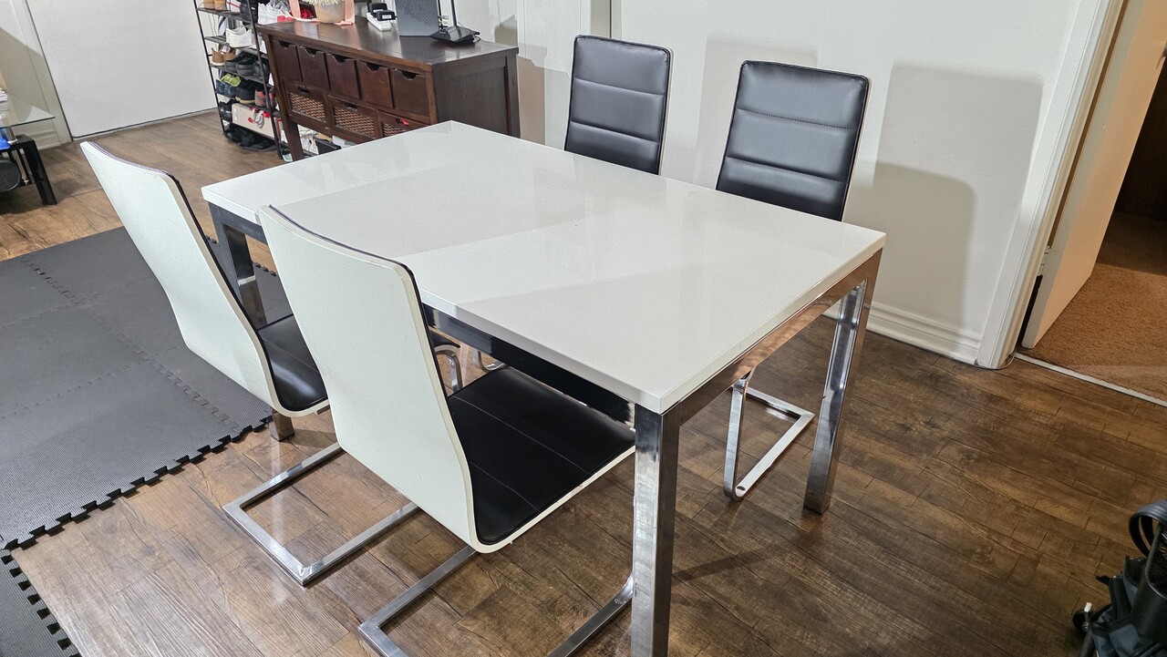 모던 다이닝 세트 5종 - 화이트 유광 & 크롬 소재 / 5 Piece Dining Set