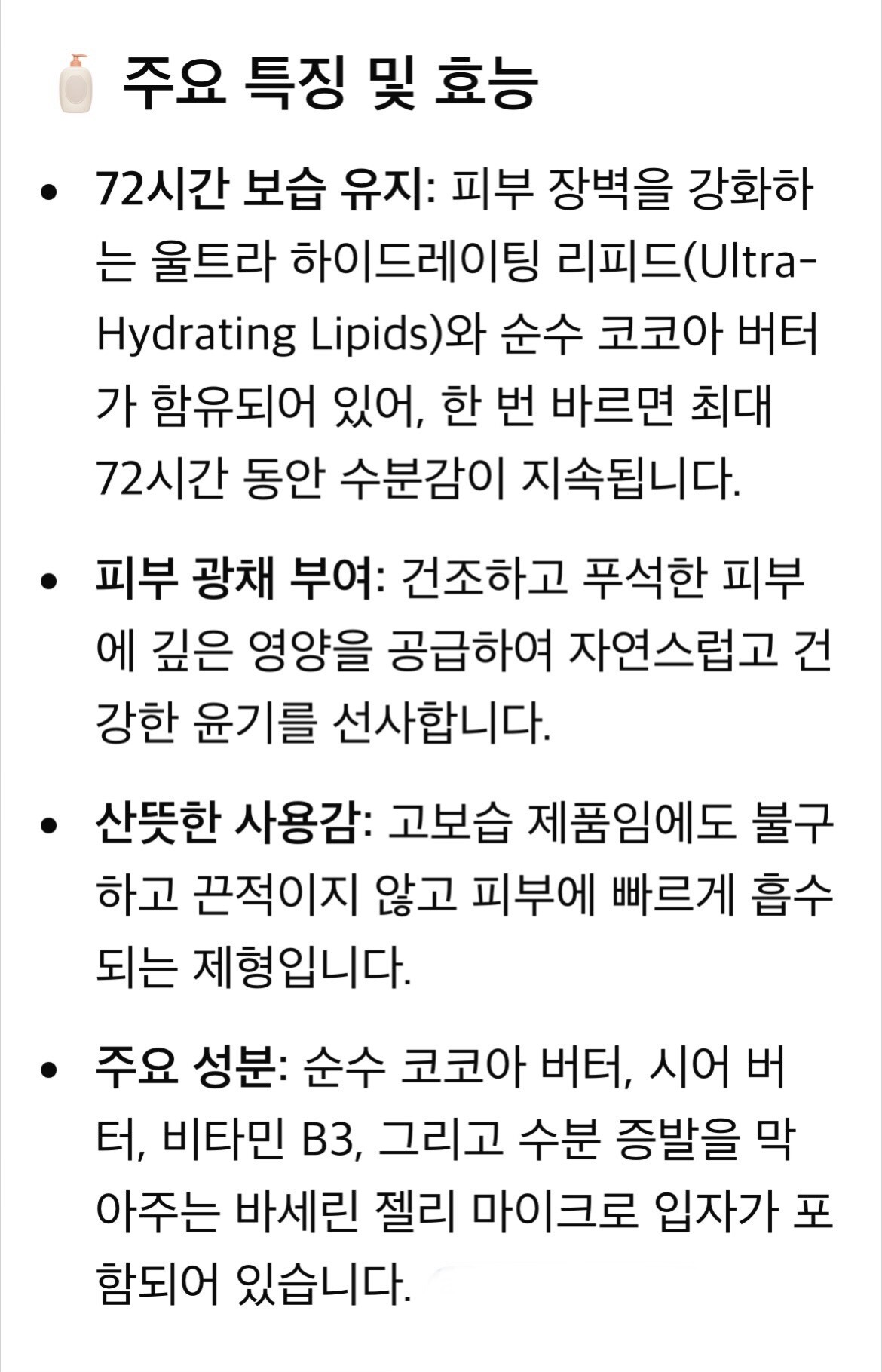 -순수 코코아 버터와 비타민 B3가 함유
