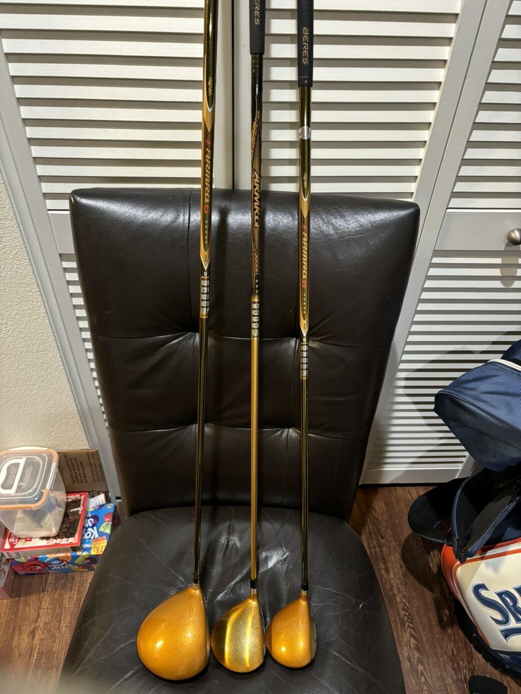 혼마 드라이버와 5번 우드 5스타 골드링 2개 레귤러 샤프트