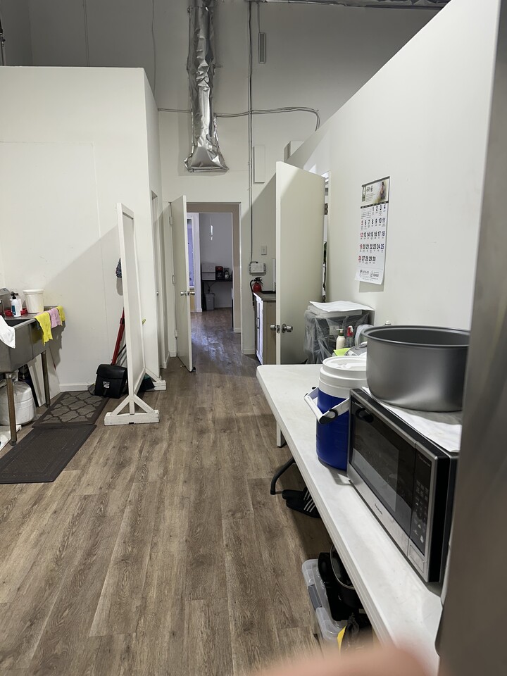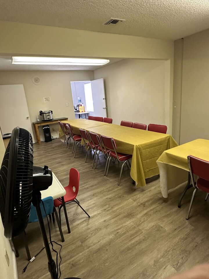 예배 좌석 45. 2 bathroom. 교제실 겸 식사 장소.