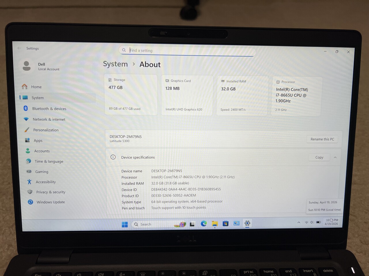 Dell Latitude 5300 Laptop 8th Generation Intel Core i7-8665U Processor